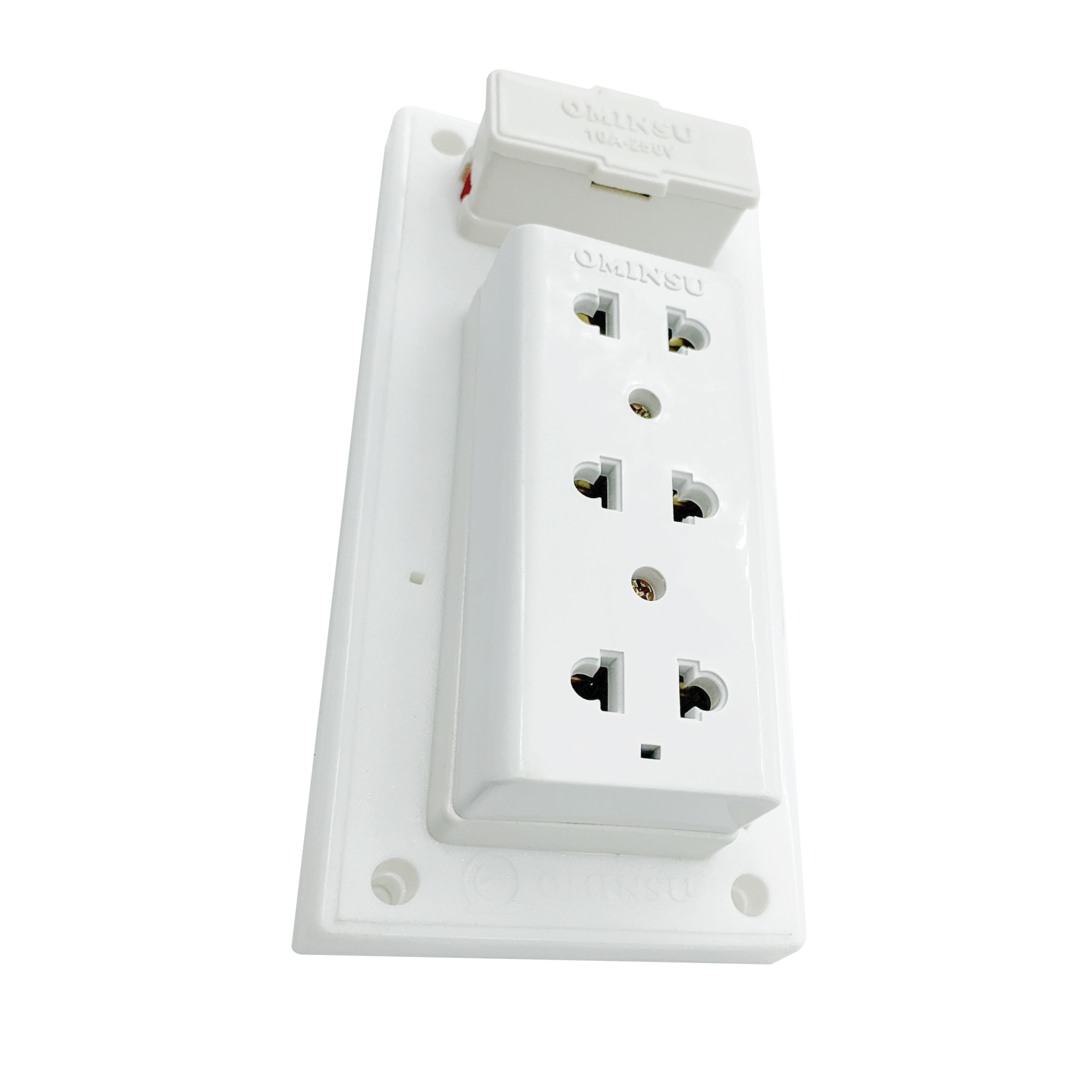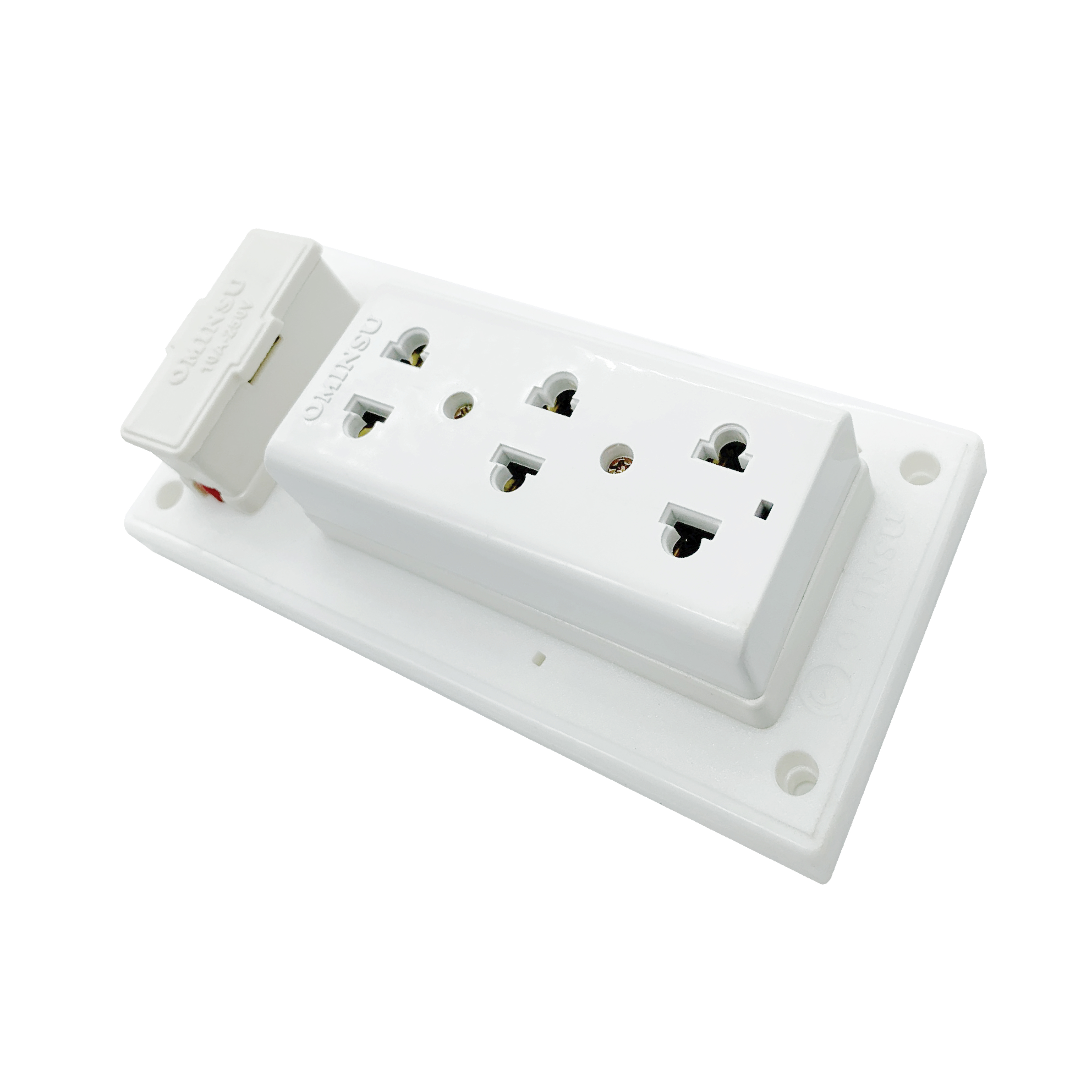 • Ổ cắm 3 cửa T8: Ổ cắm 3 cửa T8 lắp trên bảng điện B7 của thương hiệu OMINSU là loại ổ cắm chịu nhiệt, chống cháy, có 3 lỗ cắm thích hợp cho cả 2 loại chân phích cắm tròn và dẹt thông thường. Các lá tiếp điểm bên trong ổ cắm OMINSU là đồng hợp kim, có bố trí lò xo tăng lực kẹp, tiếp xúc rất tốt với chân phích cắm, giúp ổ Thái 3 cửa T8 chống được hiện tượng đánh lửa, chống move.